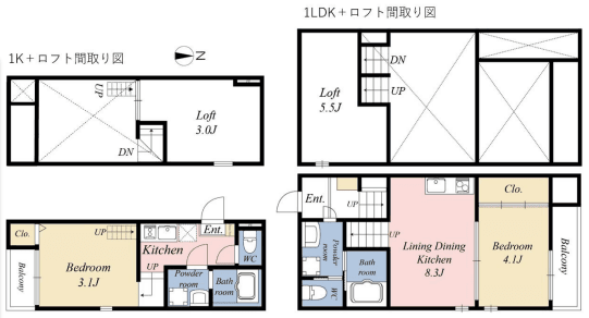 | 間取り | 1LDK+ロフト×4、1K+ロフト×4 |