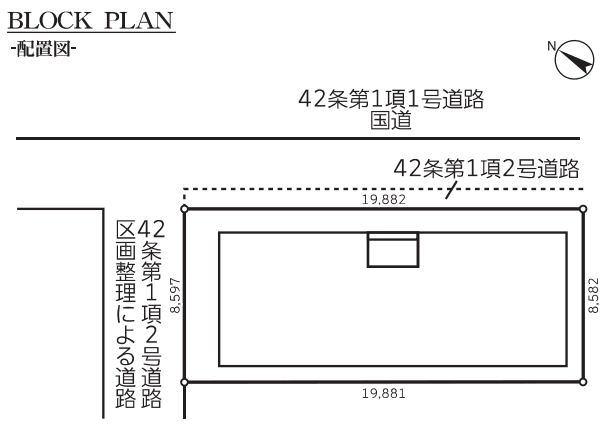 接道状況北東側17m国道1号道路・北西側4m市道1項2号道路